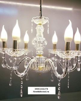 Với thiết kế sang trọng, chất liệu nhựa cứng trong suốt, đính hạt pha lê loại 1 sáng long lanh, bóng đèn led dạng nến bền, đẹp sử dụng điện 220v, đèn chùm nến 6 nhánh sẽ tạo nên cho không gian trang trí thật lung linh, sang trọng, ấm cúng và tràn đầy năng lượng. Chúng tôi đảm bảo bán hàng chất lượng và giá cạnh tranh nhất thị trường, hãy gọi ngay cho chúng tôi 0905018078 để được tư vấn và mua hàng.