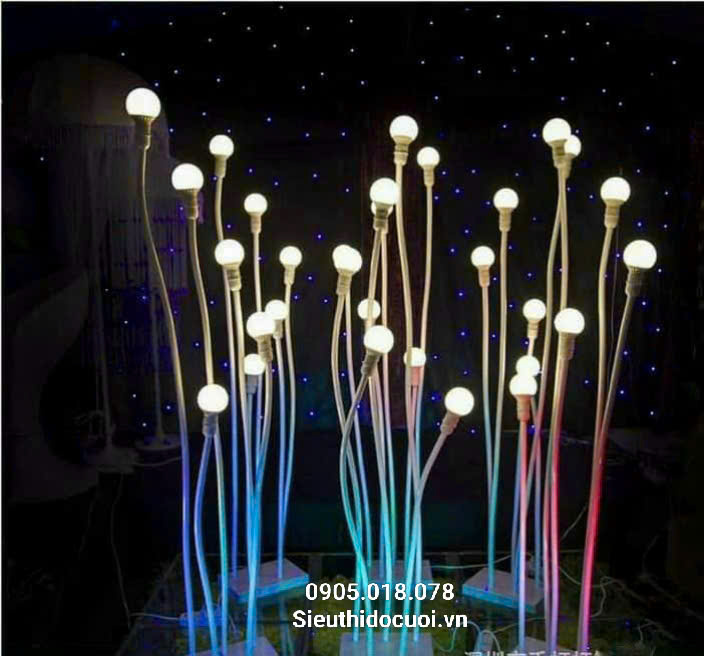 Đèn dẫn lối đám cưới bóng tròn 5 ngọn với một trụ có 5 bóng led ánh sáng màu vàng nắng, tạo không gian trang trí ấm cúng, sang trọng, độc đáo.