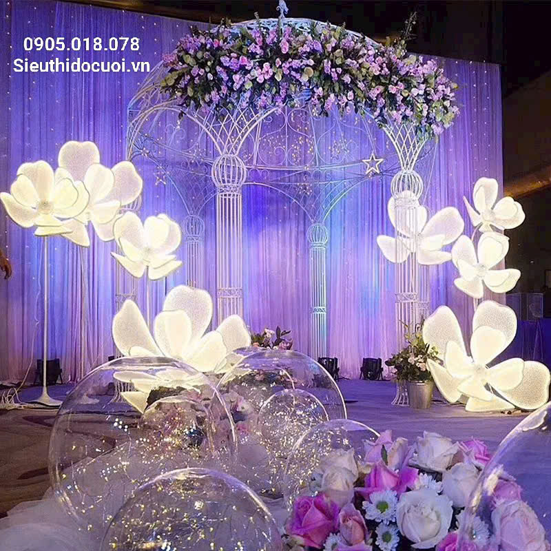 Một bộ đèn hoa lan bông lớn dẫn lối sân khấu có 4 bông (4 cây), có chiều cao khác nhau: 1.7m, 1.5m, 1.2m, 80cm.