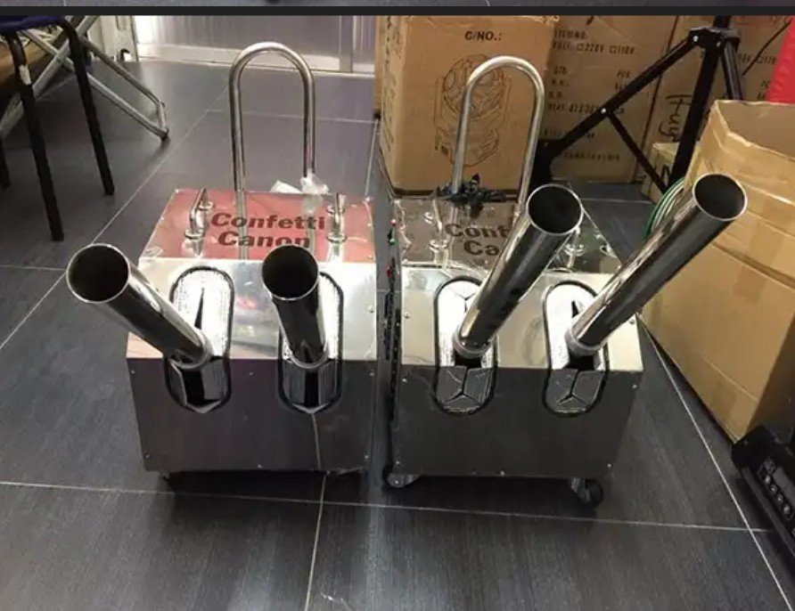Máy bắn kim tuyến 2 nòng, công suất mạnh tối đa hơi 10kg, có bộ phận điều khiển từ xa, bảo hành 06 tháng.