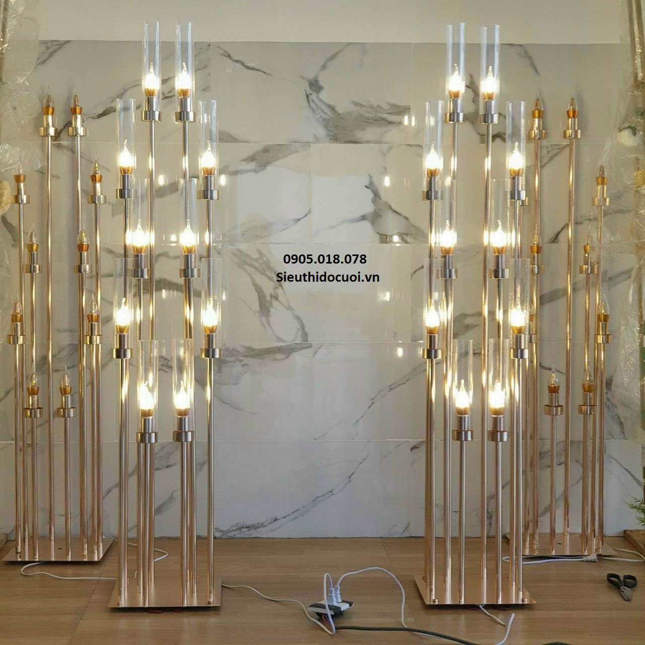 Trụ đèn led 8 ly (10 ly) hay gọi là sóng đèn 8 ngọn (10 ngon) có chụp đèn là sản phẩm luôn bán chạy nhất trong phân khúc đèn dẫn lối đám cưới, đèn trang trí sân khấu
