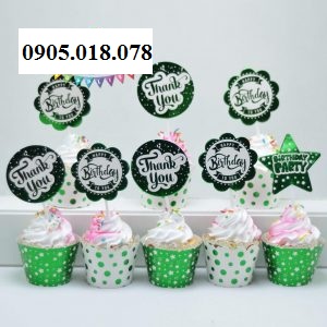 Tem Bánh Cupcake Sinh Nhật Chủ Đề Xanh Lá Ép Kim. Gọi ngay: 0905018078