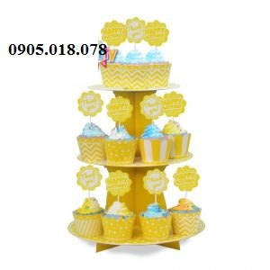 Tháp Bánh Cupcake  Sinh Nhật Chủ Đề Màu Vàng