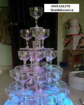Tháp ly champagne mẫu TL17 với chất liệu pha lê trong suốt, ly bằng nhựa cao cấp trong suốt, kết hợp với đèn led đổi màu bền đẹp.