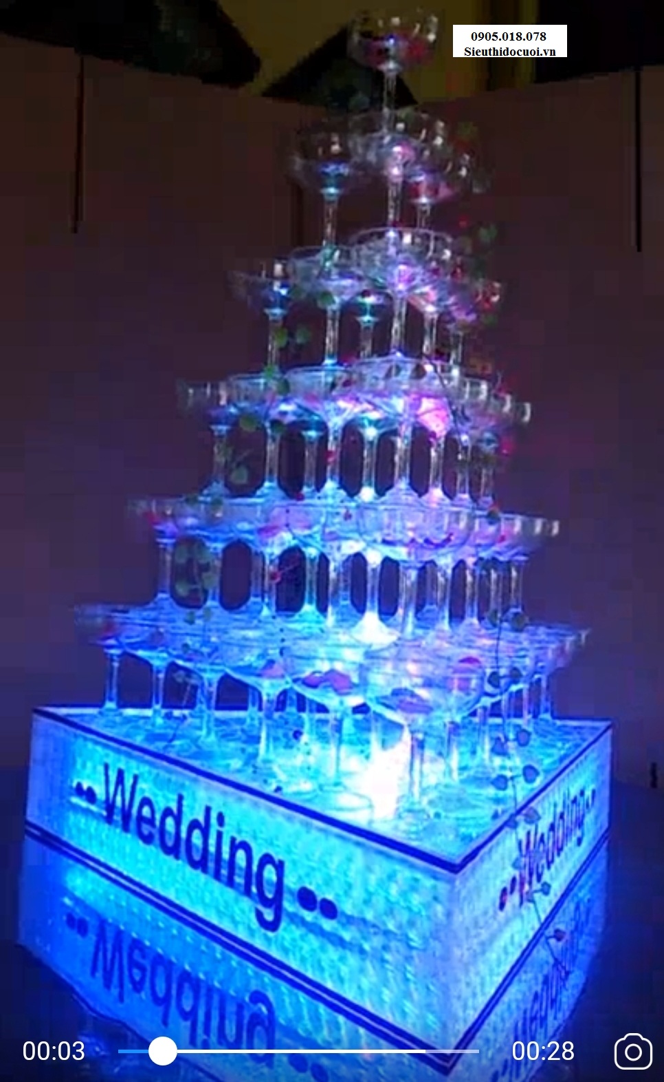 Tháp ly champagne xếp tầng mẫu TL24 với chất liệu pha lê trong suốt, ly bằng nhựa cao cấp trong suốt, kết hợp với đèn led đổi màu bền đẹp.