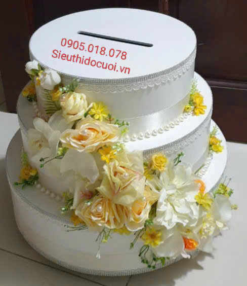 Thùng tiền đám cưới hình bánh kem 3 tầng
