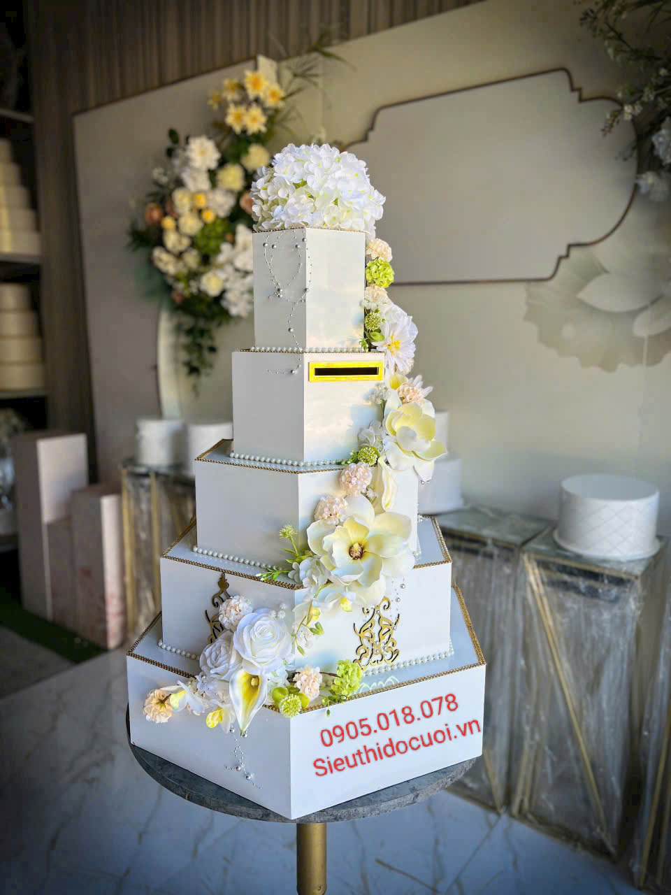 Mua thùng tiền đám cưới hình bánh kem lục giác. LH: 0905018078