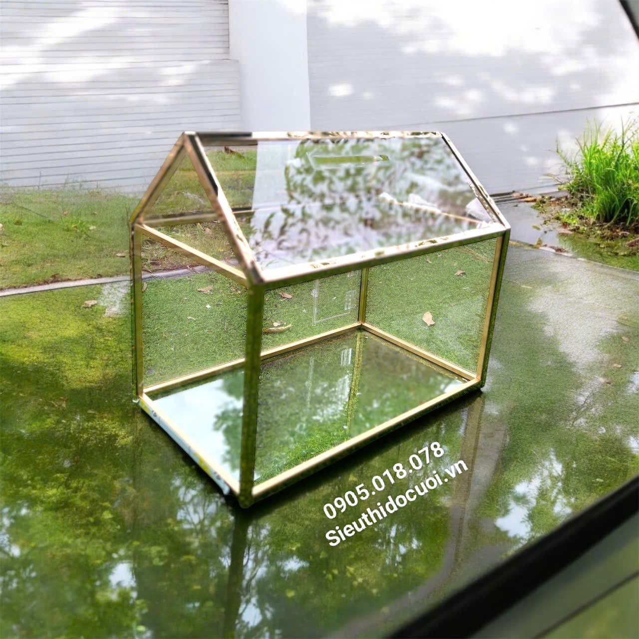Thùng tiền đám cưới hình ngôi nhà bằng mecal trong suốt